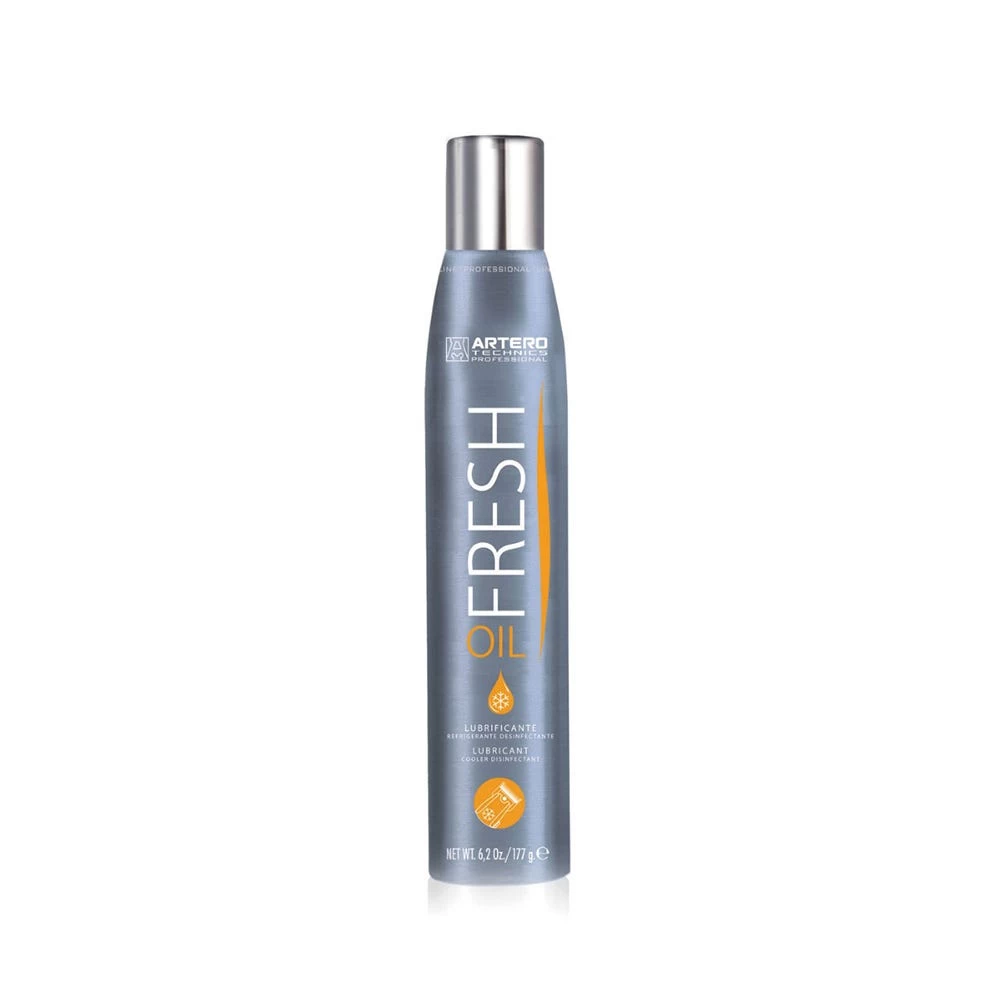 Artero Oil Fresh Spray 6.2oz Dog Clipper Blade Care and Disinfectant Spray is specially formulated to cool hot blades nearly instantly and also works as a disinfectant. Use for Clipper Blades and Shears. Lubricates blades to prevent wear and rust, extending the blade life. Can be used to disinfect and lubricate shears at the joint. Makes cleaning blades and shears a snap!
