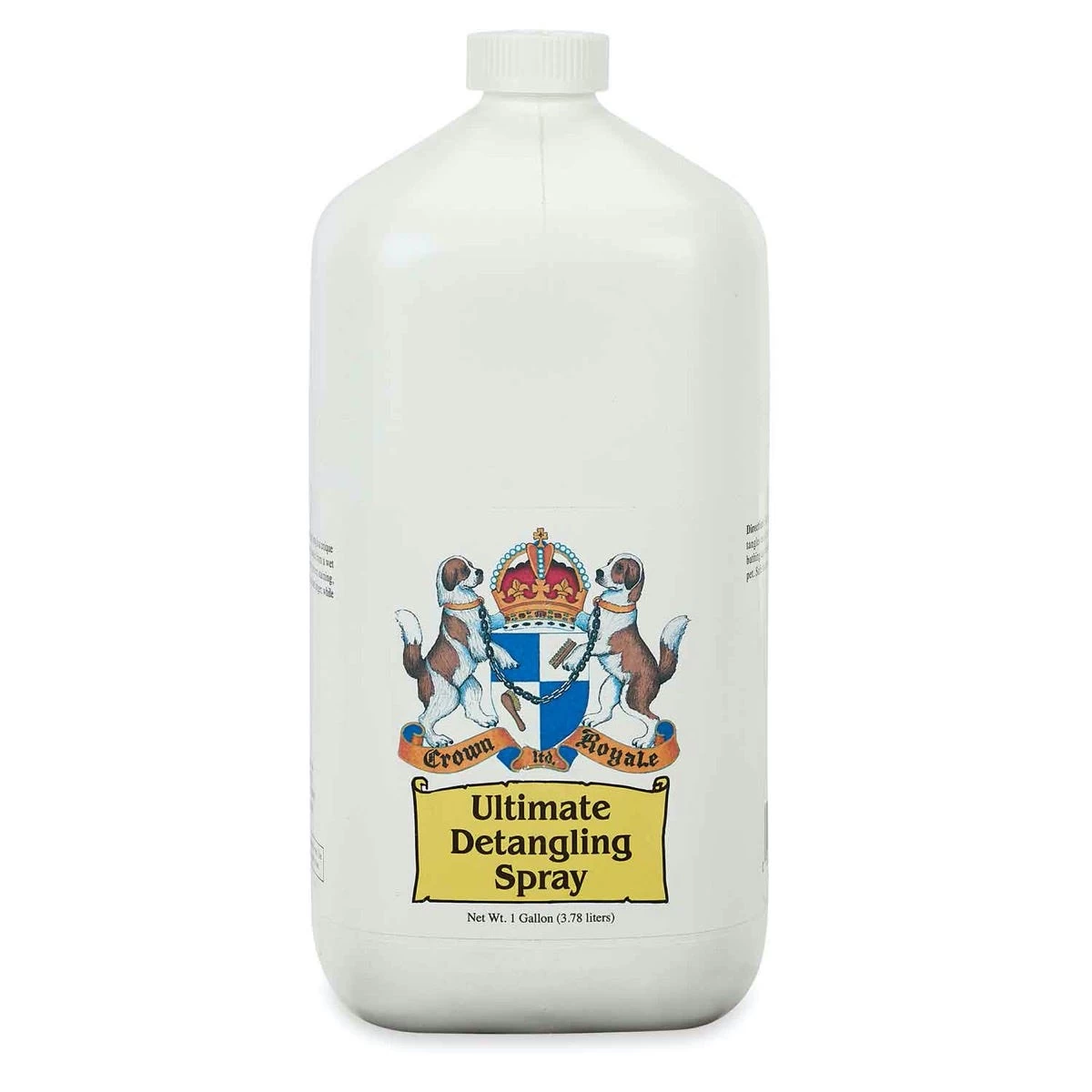 Crown Royale Ultimate Detangle Dog Grooming Spray 16oz Ready to use. The Crown Royale Ultimate Detangle Dog Grooming Spray is a unique easy way to use spray that removes tangles from a wet or dry coat. Formulated to help prevent staining, repel dirt and urine and keep coat clean longer, while removing tangles.