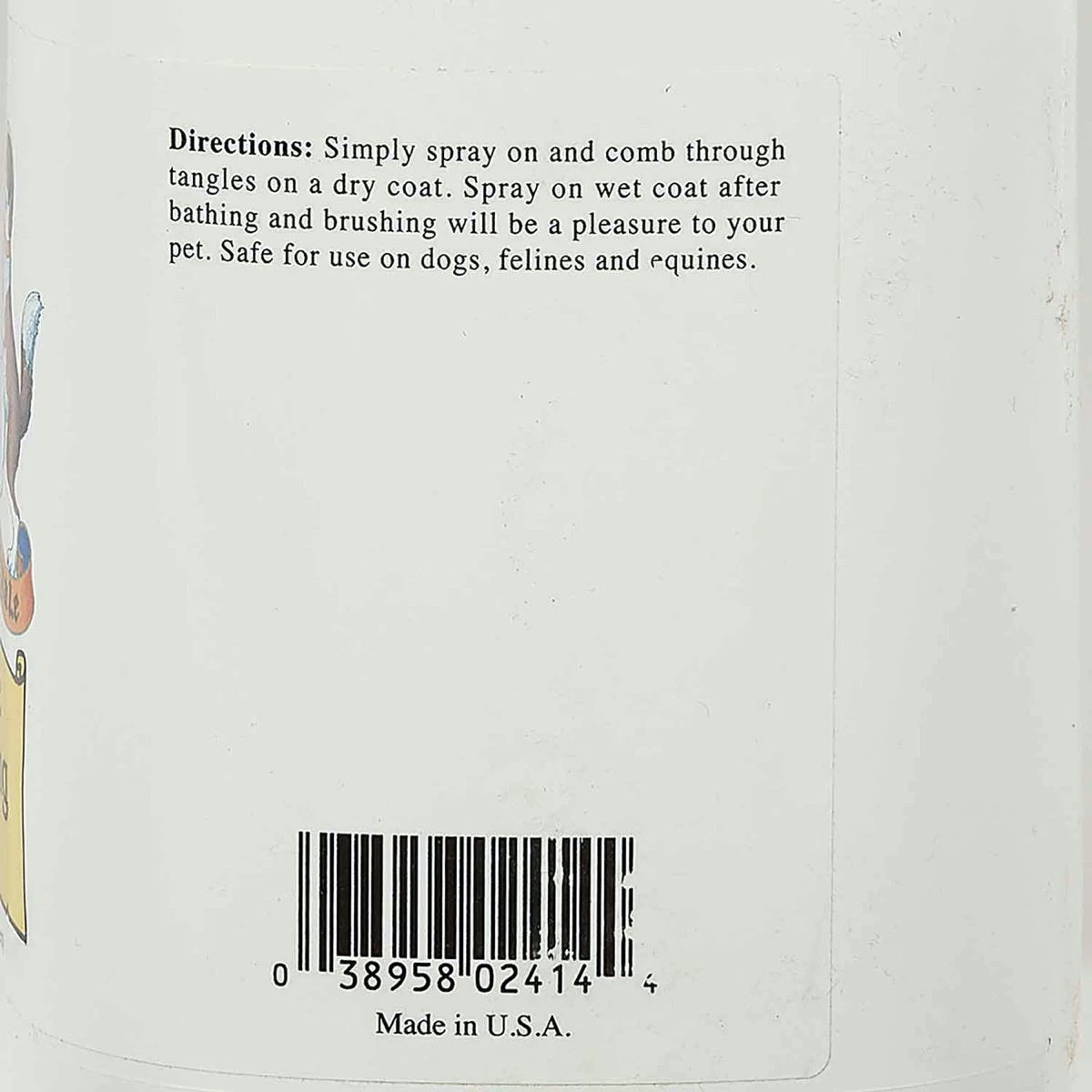 Directions Simply spray on and comb through tangles on a dry coat. Spray on wet coat after bathing and brushing will be easy on you and your pet. Safe to use on dogs, cats, and horses.