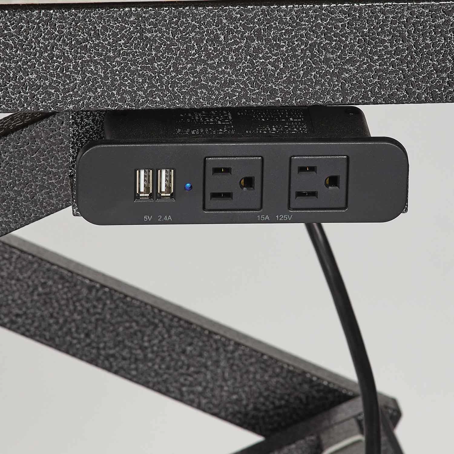 • Two USB outlets for charging and two electrical outlets for corded clippers and dryers keep the floors clear of cables