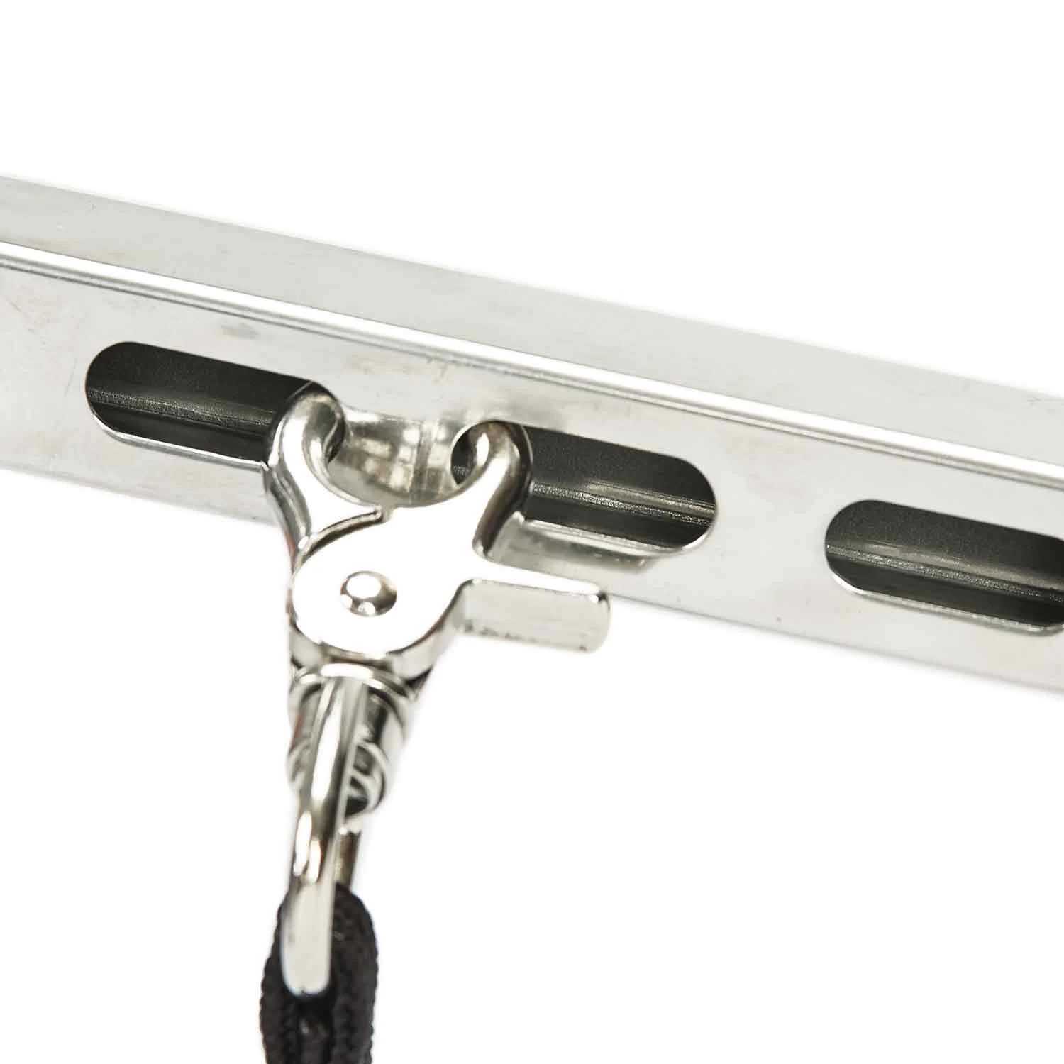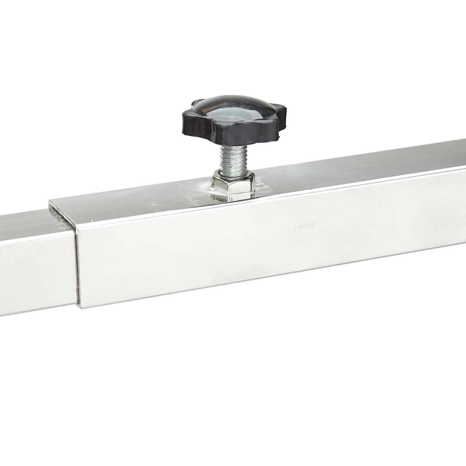 - Includes two vertical posts and an adjustable horizontal connector bar.