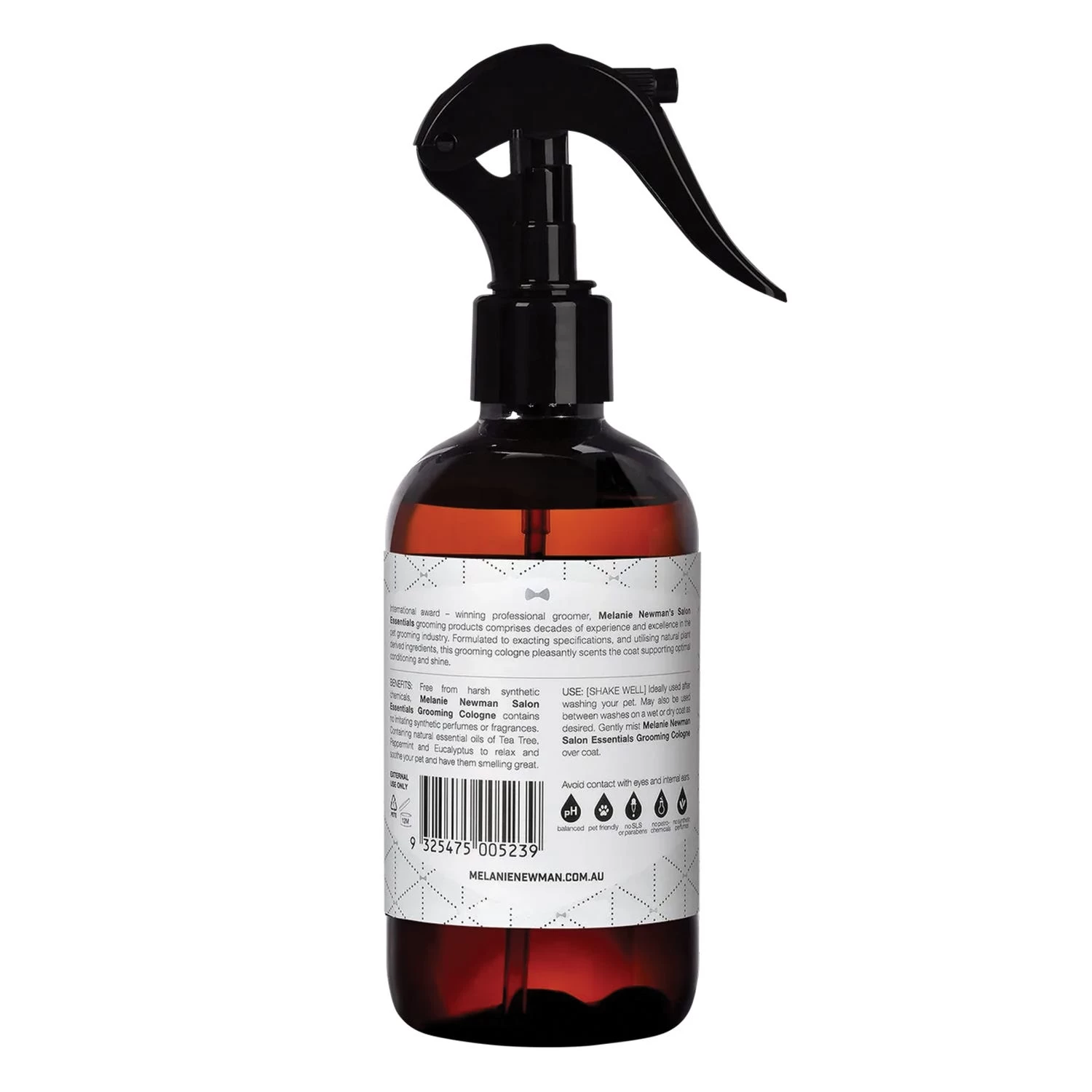 Benefits: Free from harsh synthetic chemicals, Melanie Newman Salon Essentials Grooming Cologne contains no irritating synthetic perfumes or fragrances. Containing natural essential oils of Tea Tree, Peppermint and Eucalyptus to relax and soothe your pet and have them smelling great.