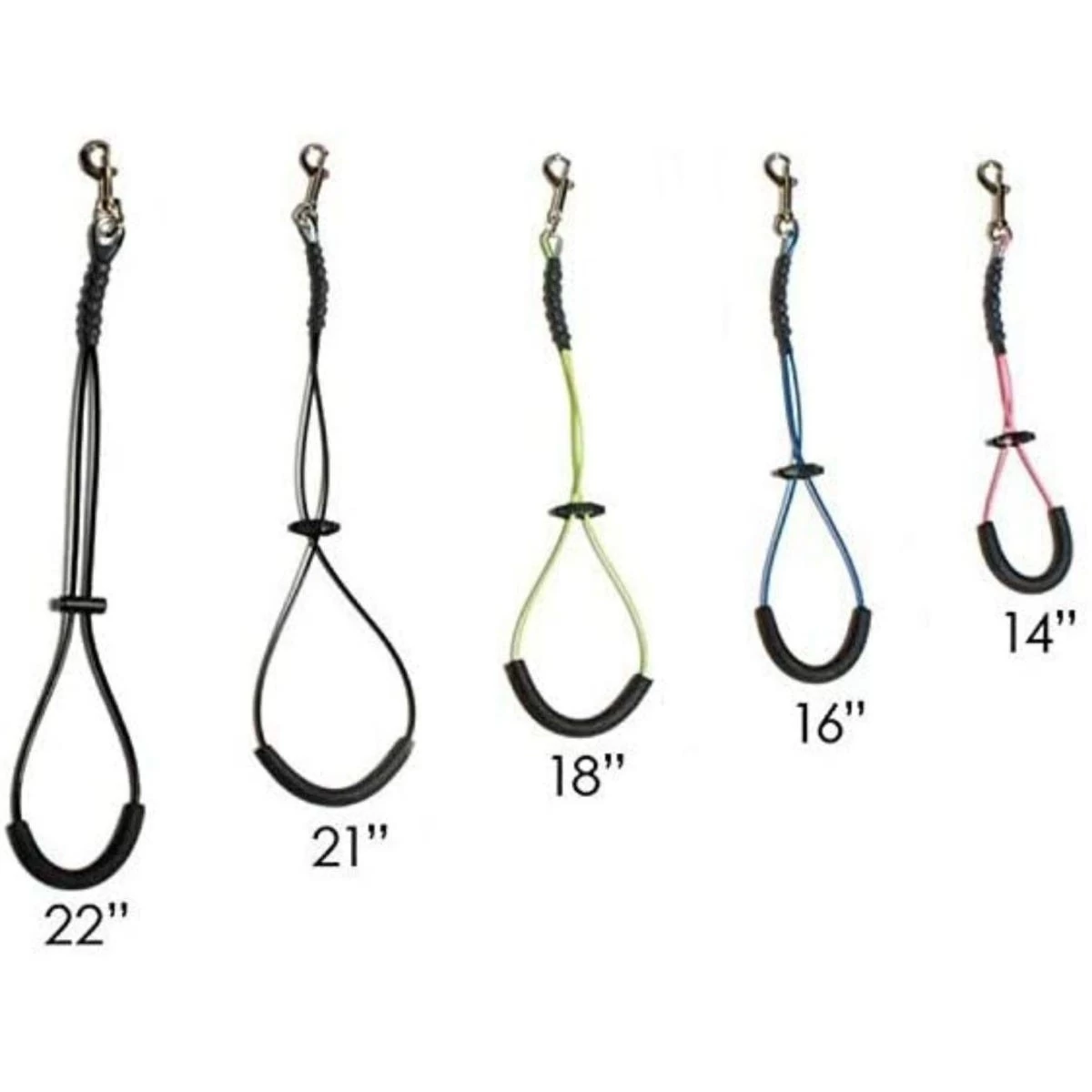 Loops can hook to grooming posts or any hook to make the noose length variable. Made with squeeze locks so dogs cannot slip the noose off. Flexible steel cable coated with a vinyl coating and has a soft, cushioned covering that won’t rip, rub, or tear around pet’s neck.This chew-resistant grooming noose stays dry even when wet.