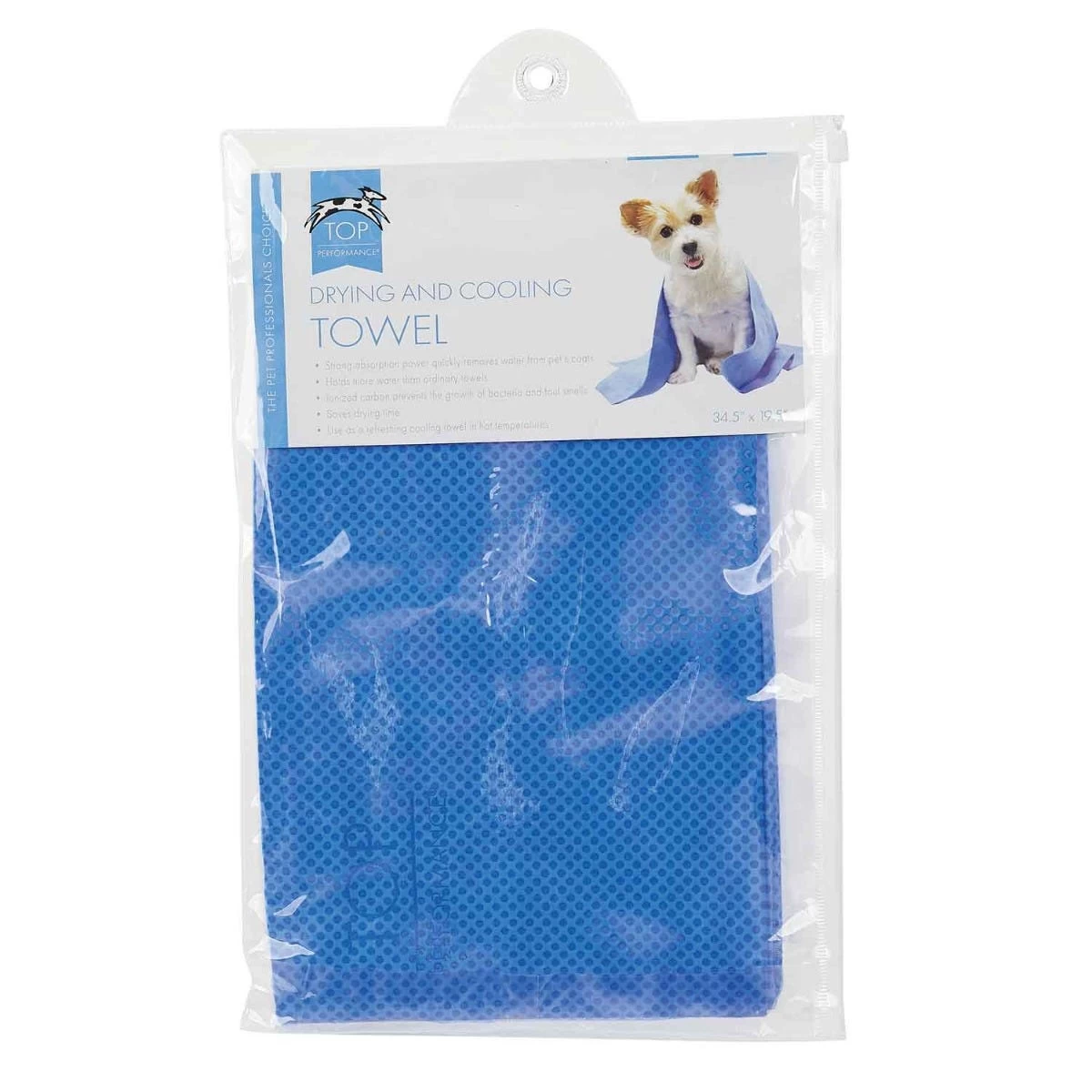Ultra-absorbent Top Performance® Drying and Cooling Towel is infused with ionized carbon to prevent the spread of bacteria and unpleasant odors. Holds more water than ordinary towels. Quickly remove water from pet’s coats to save drying time. In summer and hot temperatures wet towel can be used as a refreshing cooling blanket!