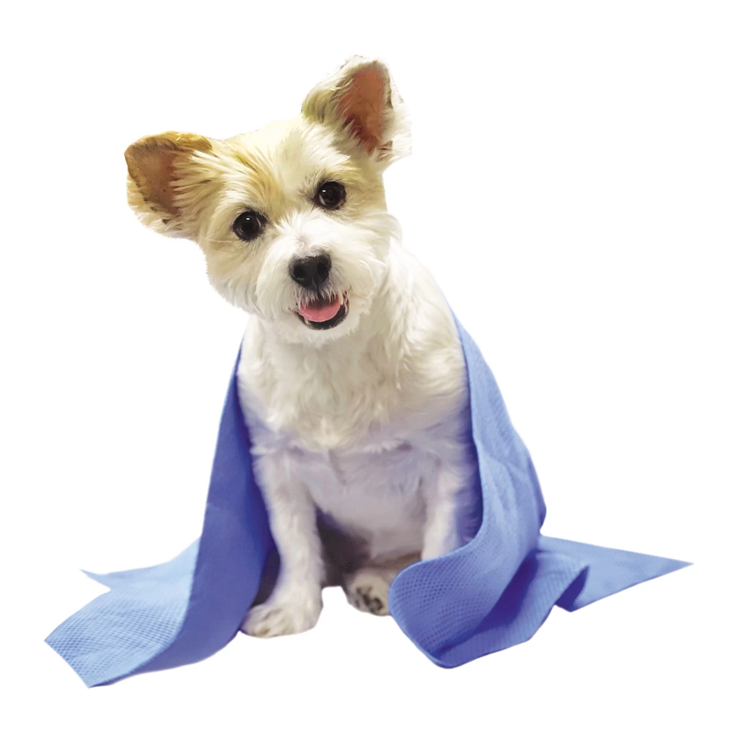 Directions for use as a Cooling Towel: Soak the towel in cold water and wring out excess water. Don’t wring towel out excessively, leave it so it still feels heavy with cool water but not dripping wet. Spread towel out on the floor for the pet to lie on. The part of the animal’s body in contact with the wet towel will cool down and pet’s temperature will be regulated. Rewet towel with cold water regularly to keep the towel cool and to avoid dehydration.